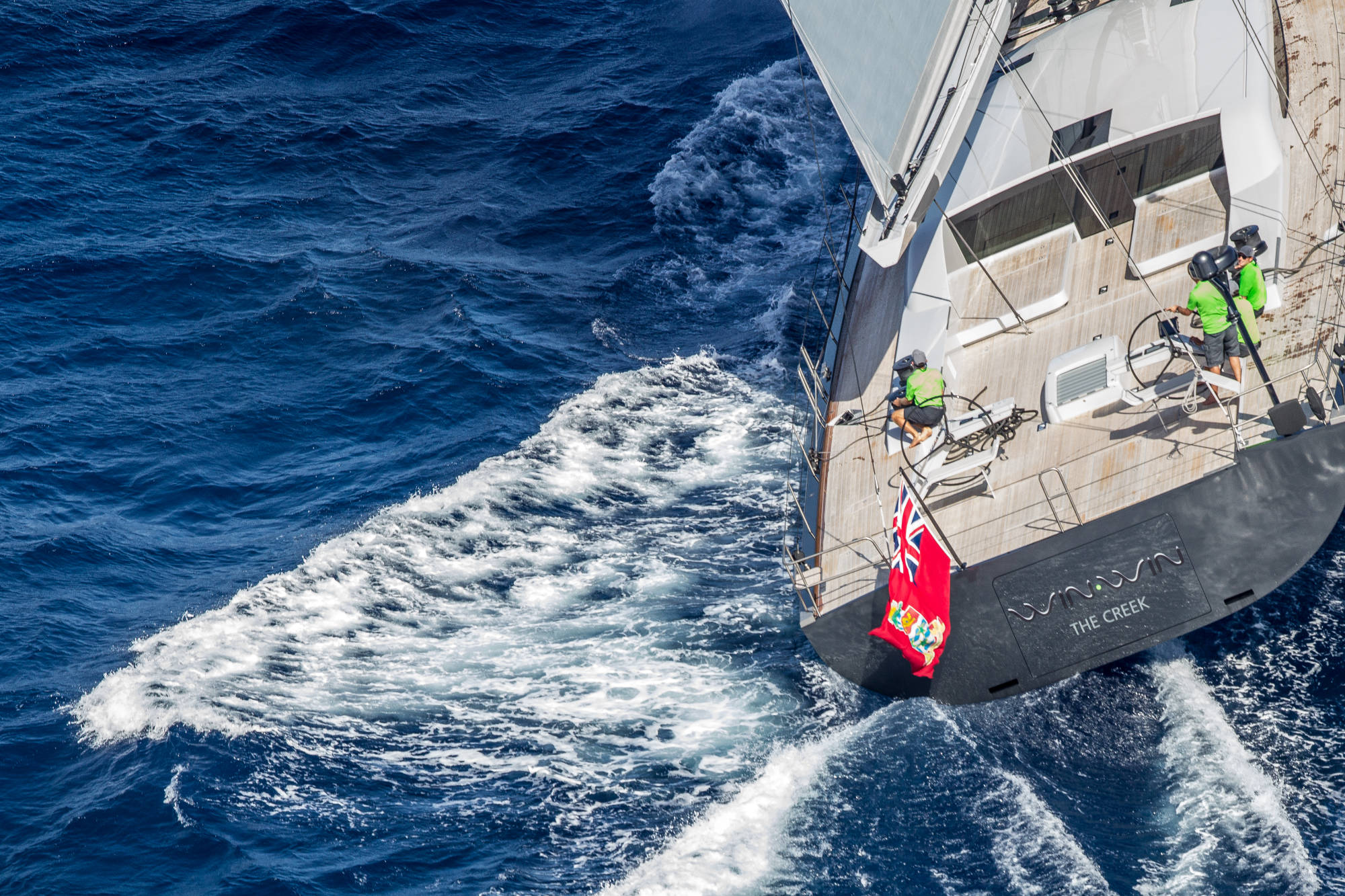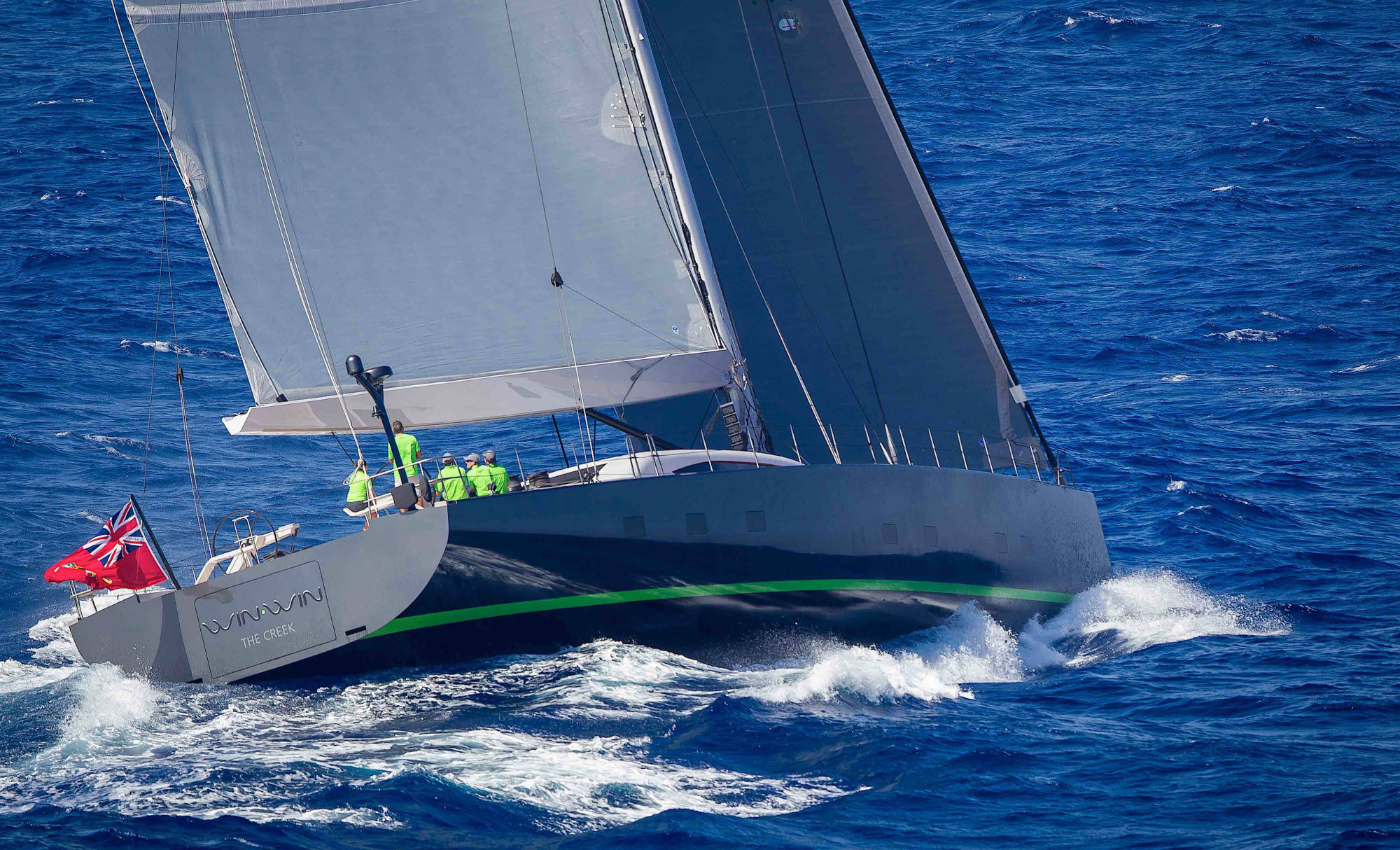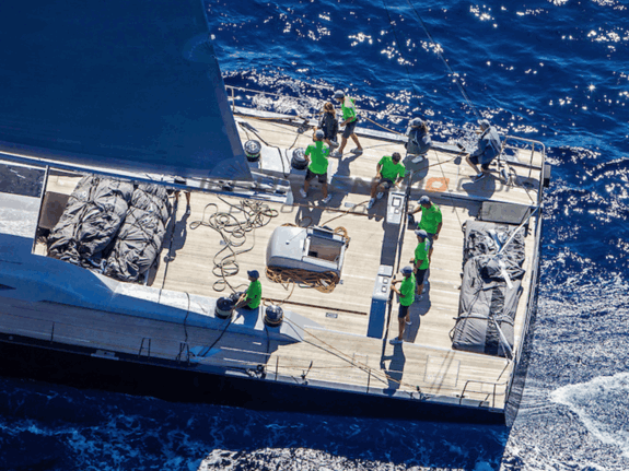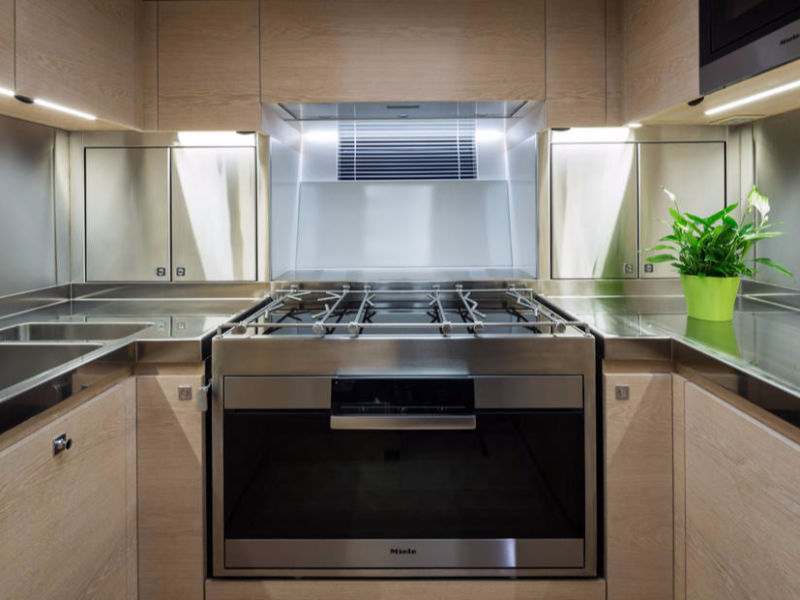 Baltic 108 WinWin is built using pre-preg carbon with a foam core. Her modern, functional interior features bleached oak panels.